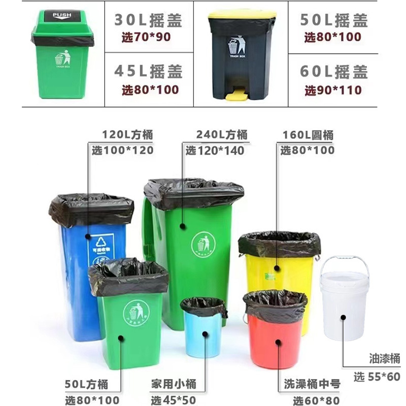 專業生產大號垃圾袋、特大號垃圾袋、中小號平口垃圾袋等